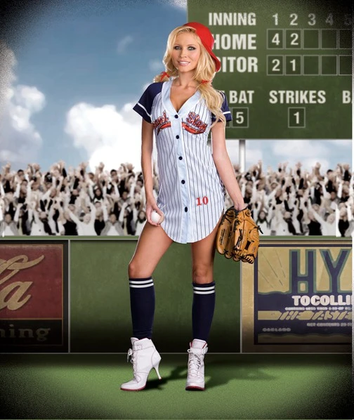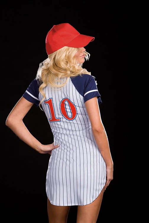 Ensemble de quatre pièces. Robe en maille extensible à boutons-pression avec application « Grand Slam » brodée de sequins et numéro de transfert à chaud « 10 » au dos. Comprend un short en tricot extensible avec taille élastique, une casquette de baseball et des chaussettes hautes athlétiques. (Gant de baseball et baseball non inclus.) Également disponible en taille plus DG6469X (1X/2X, 3X/4X)
