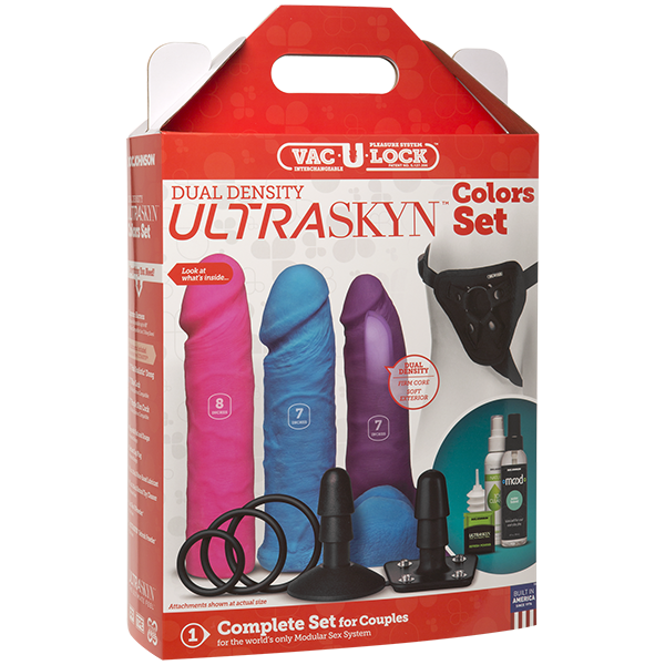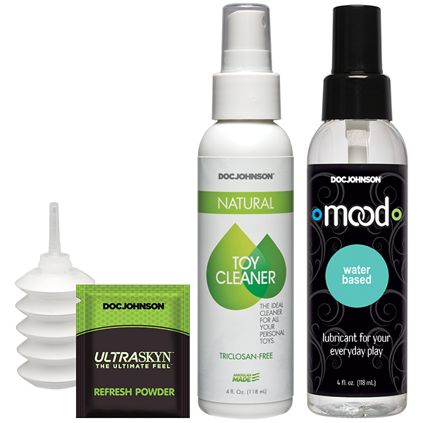 L’ensemble à double densité Vac-U-Lock comprend également le nettoyant pour jouets naturels Doc Johnson et la poudre de rafraîchissement ULTRASKYN pour entretenir correctement et hygiéniquement vos accessoires ULTRASKYN à double densité.