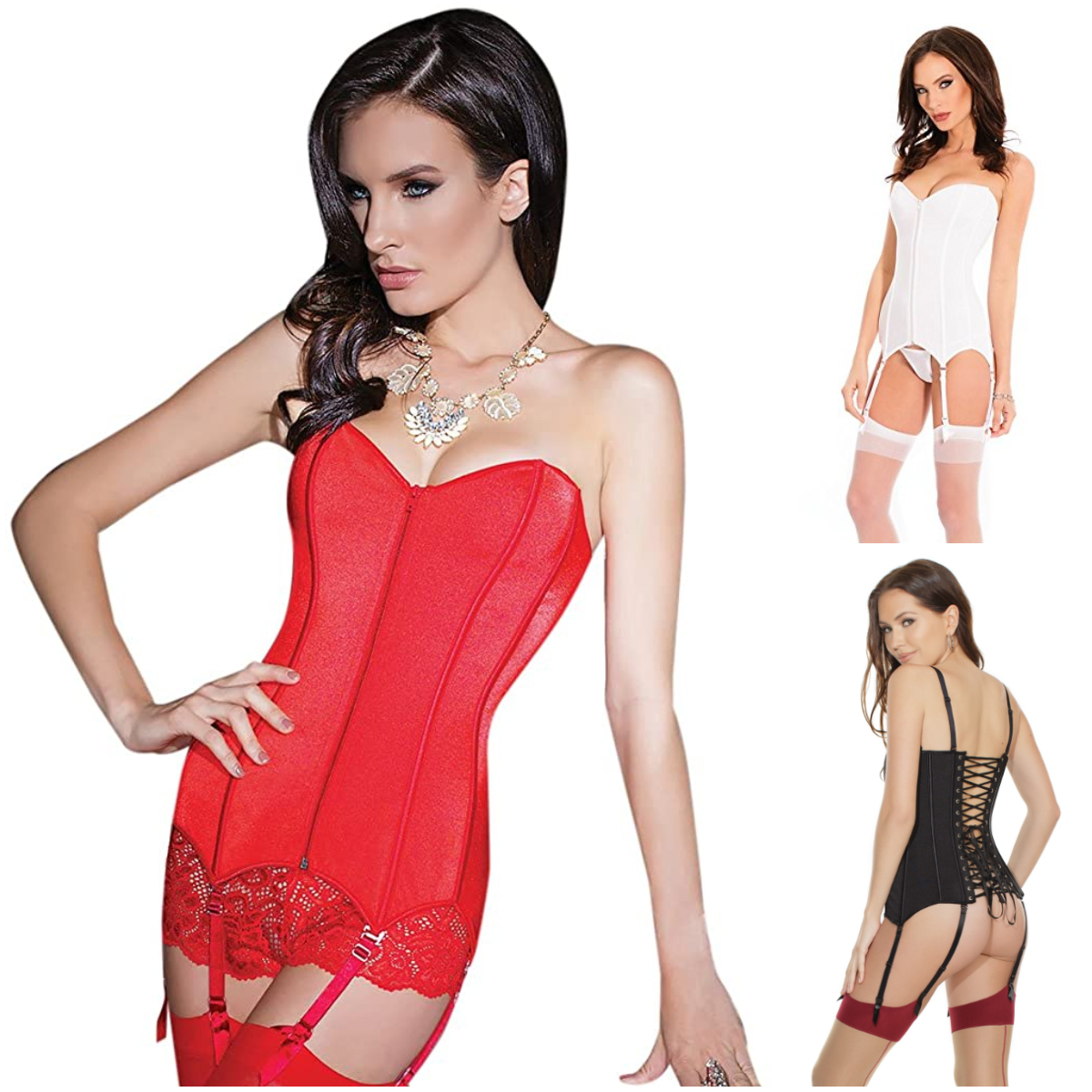 Comprend des bretelles amovibles et six jarretières amovibles.