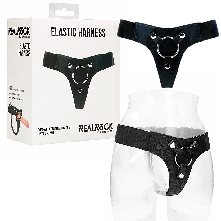 Attachez un gode vibrant ou non au Elastic Harness de RealRock