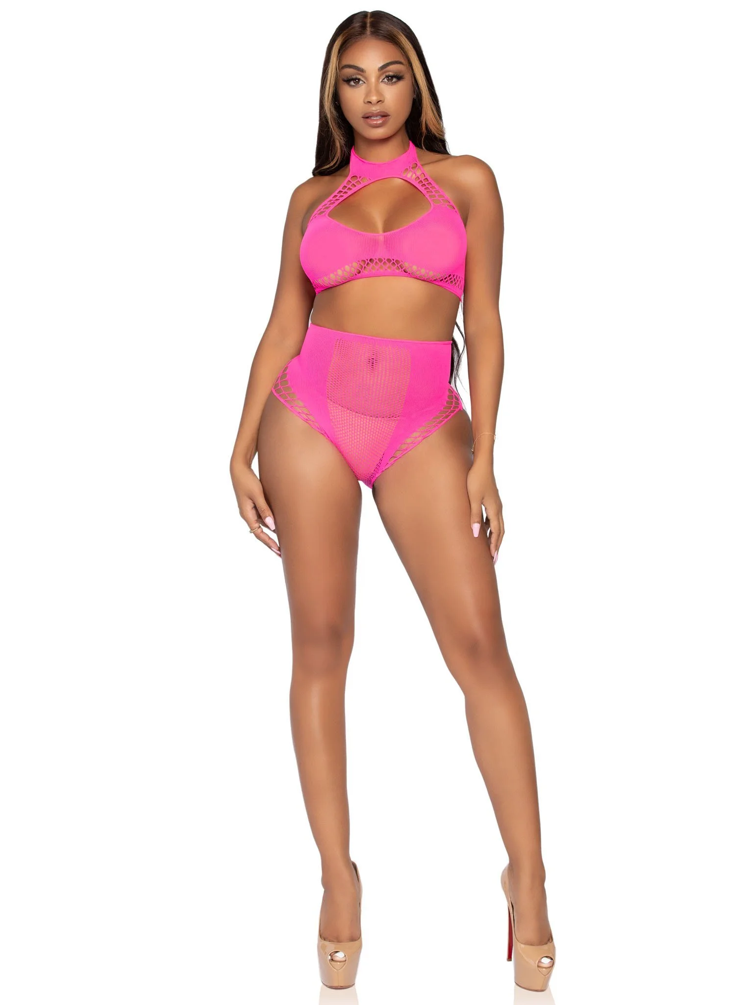 2 pièces avec haut court à dos nu et trou de serrure en filet et bas taille haute
