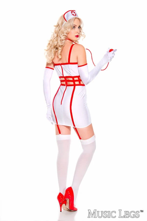 Comprend: robe d’infirmière sexy, casque, gants, stéthoscope et bas cuiss