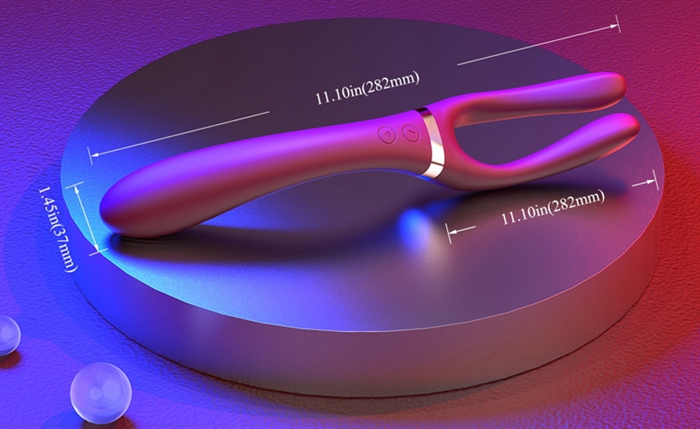 Simple à utiliser avec seulement 2 boutons; le premier qui active la fonction vibratoire en haut du vibrateur dans sa forme en U et le deuxième qui active la fonction du bas pour le vibrateur corporel.