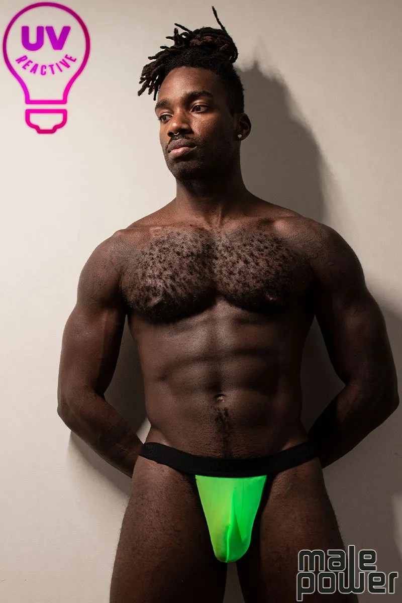Micro thong en douce mesh extensible semi-transparente réactive aux UV avec une large taille élastique.
