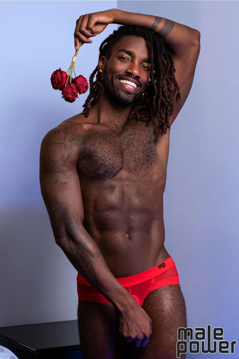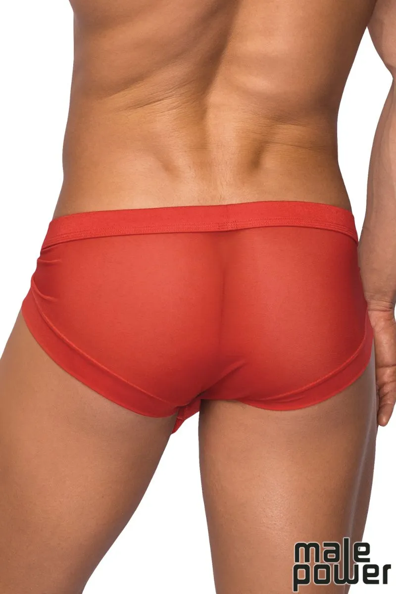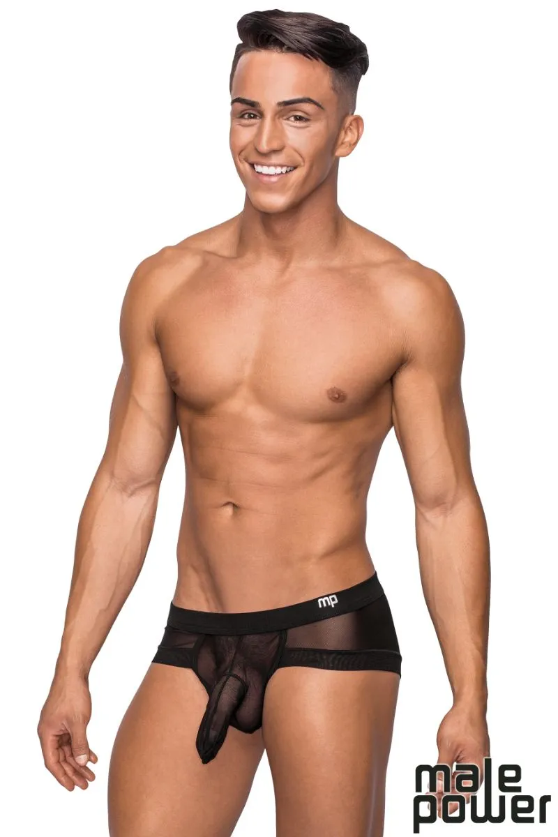 Mini micro short en mesh semi-transparente extensible avec une poche style fourreau et une douce taille élastique restant bien en place comprenant le nom de marque.