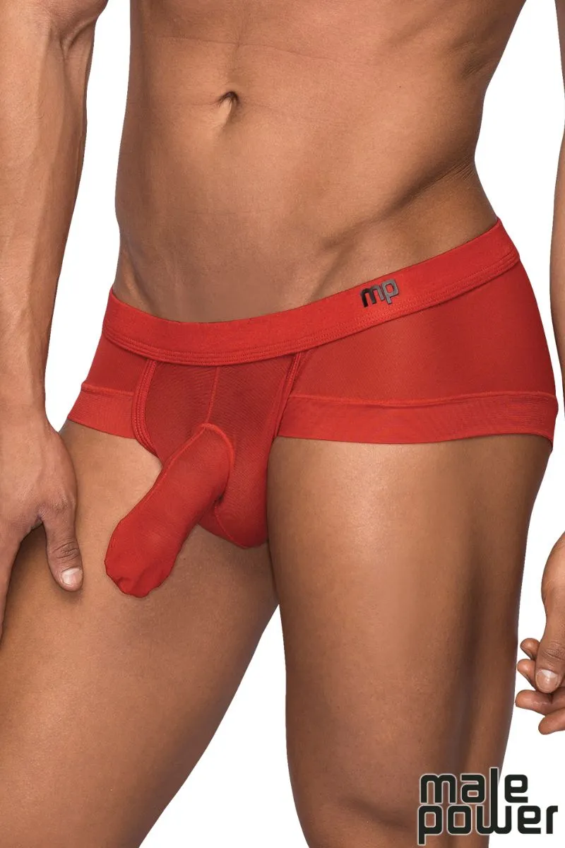 Mini micro short en mesh semi-transparente extensible avec une poche style fourreau et une douce taille élastique restant bien en place comprenant le nom de marque.