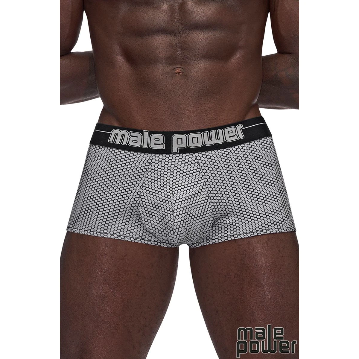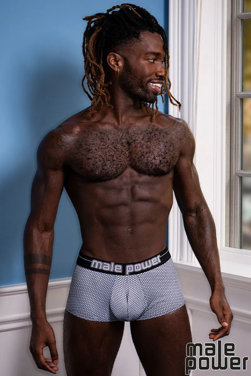 Mini short à imprimé héxagonal avec une large taille élastique avec le logo “Male Power”.