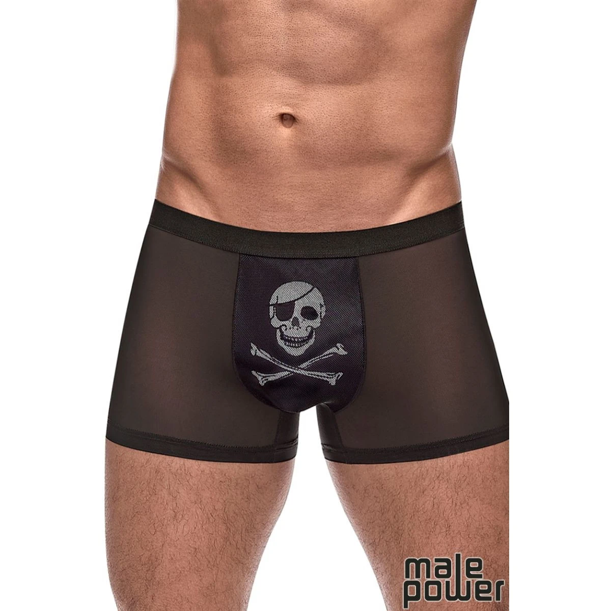 Mini short fait de micro-mesh ultra fine confortable offrant un confort de longue durée avec une taille élastique et un imprimé tête de mort pirate sur la poche.