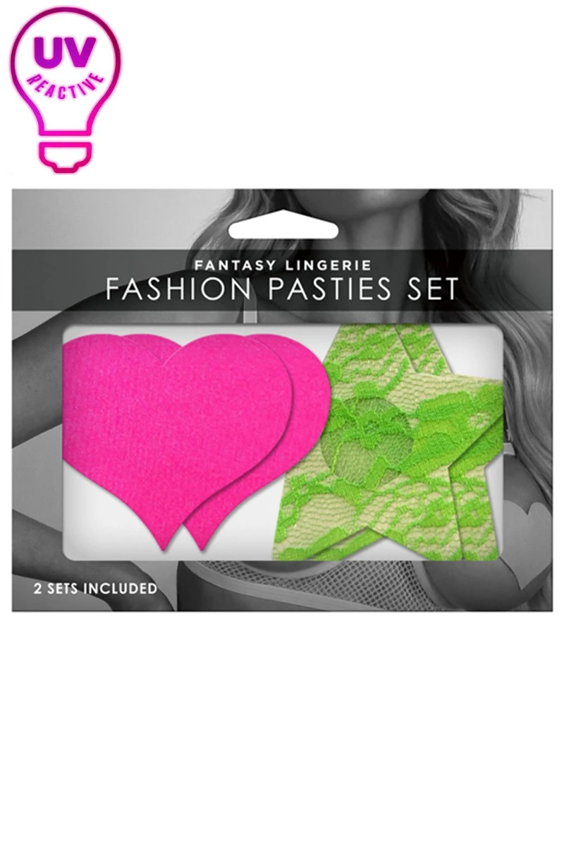 – 1 paire de pastilles étoiles en dentelle vert néon