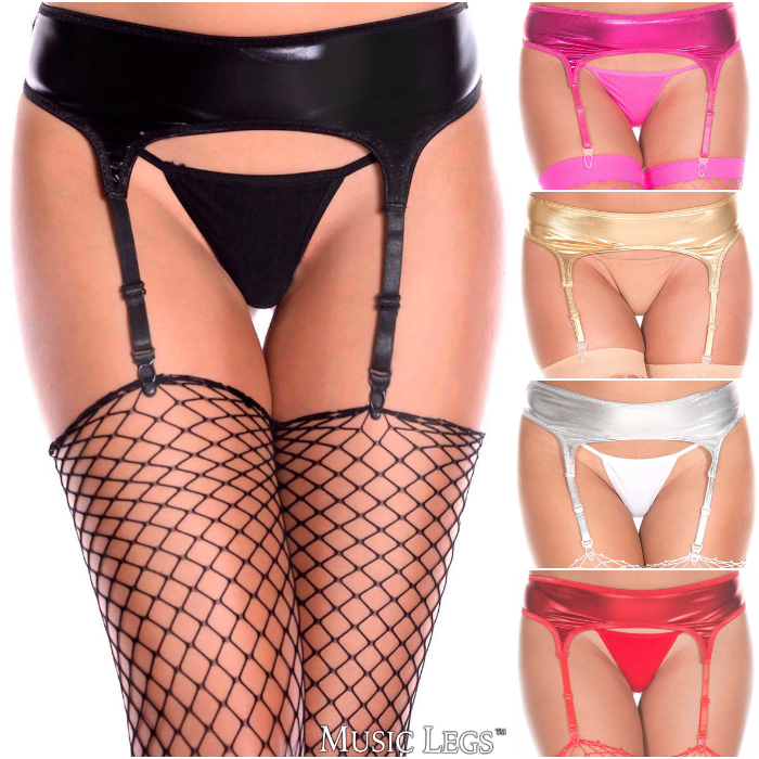 Porte-jarretelles en wet look lustré extensible avec des jarretelles en plastique ajustables (Bas ML4936 et G-String vendus séparément)