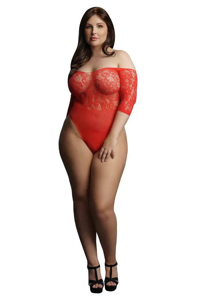 Libérez votre déesse intérieure avec ce Teddy sans entrejambe avec un bas opaque et un haut en dentelle à manches 3/4.