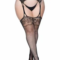 Bas En Résille Avec Haut En Dentelle – Adeline- 9901X – Grande Taille – Leg Avenue