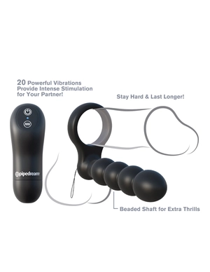 Fabriqué à partir de notre silicone Elite, sans phtalate, sûr pour le corps, cette double pénétration dispose d’un arbre de perles rondes qui stimule et excite votre partenaire à chaque poussée. La puissante balle vibrante, sans fil, se glisse à la base du stimulateur perlé et fournit des vibrations excitantes où vous en voulez plus! L’anneau pénien, en silicone extensible, met un terme aux performances décevantes en exerçant une pression sur votre membre, tandis que le doux excitateur perlé fournit une stimulation supplémentaire lors de la double pénétration. Portez l’anneau autour de votre membre et choisissez un trou – l’excitateur flexible convient autant pour le vagin que l’anus pour des résultats tout aussi étonnants!