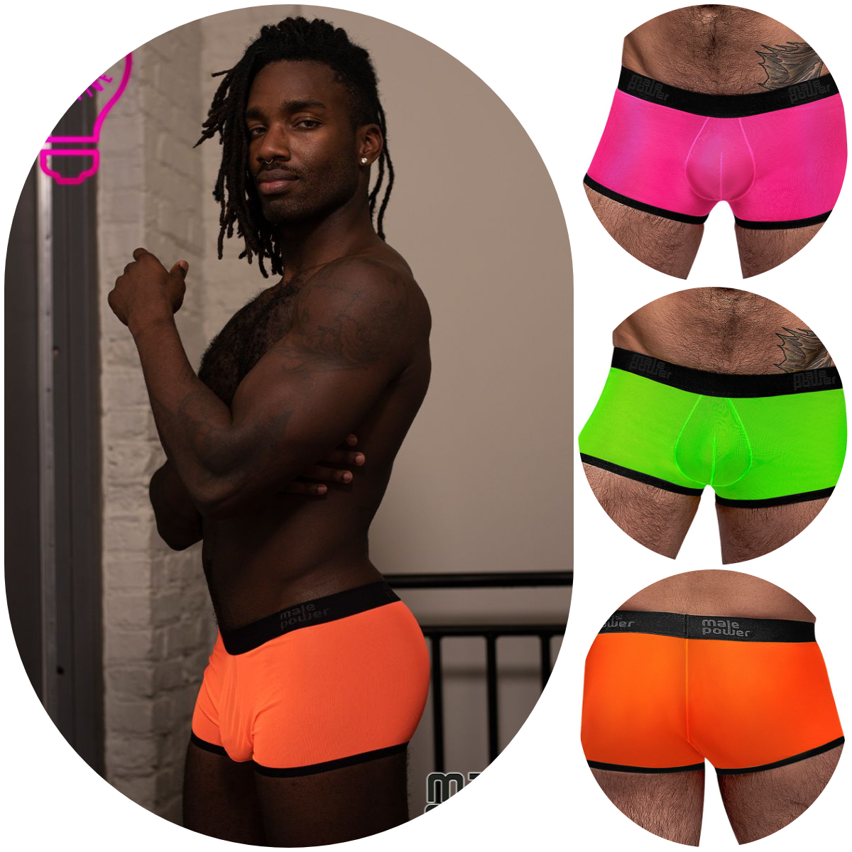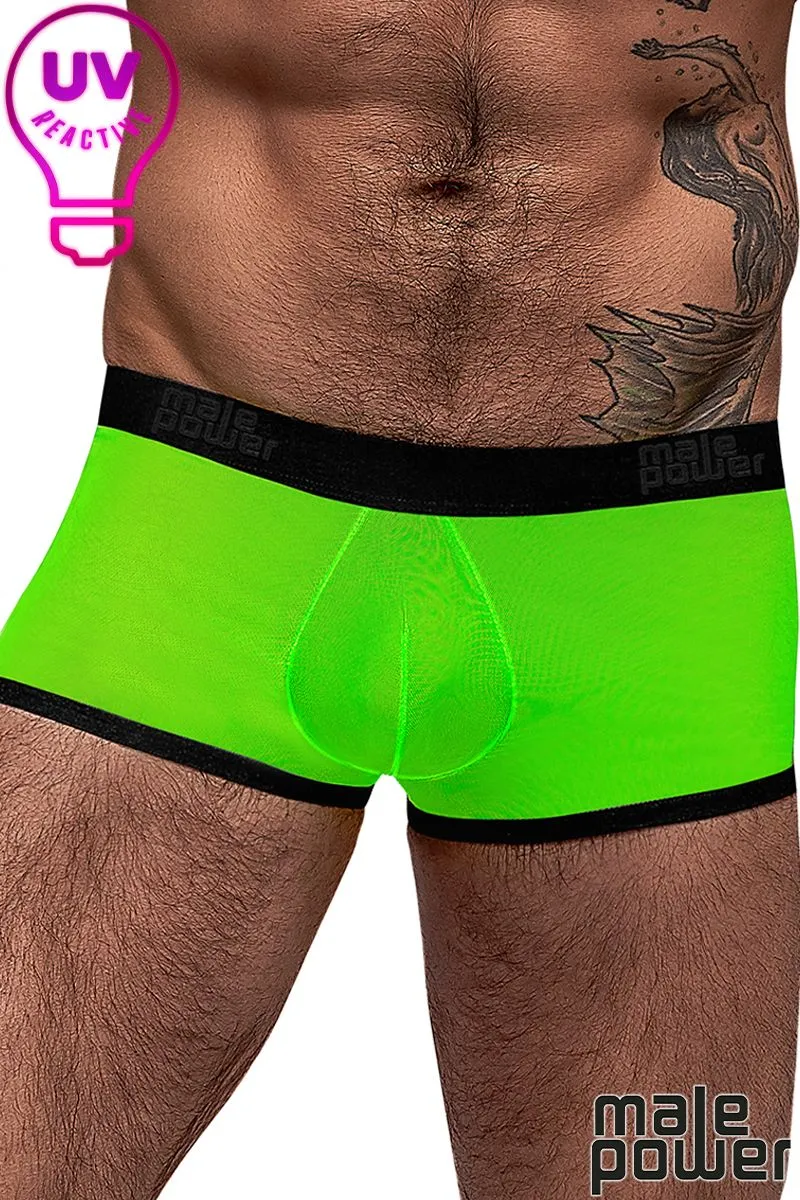 Short en douce mesh extensible semi-transparente réactive aux UV avec une large taille élastique.